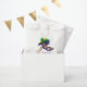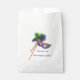 Package of 50 white paper favour bags with an image of a beautiful purple, green and gold satin mask on a stick with coordinating feathers and ribbons, and the text, “Laissez Les Bon Temps Rouler” (Let the Good Times Roll in French), in purple French script. See the entire Mardi Gras Favour Bag collection in the PARTY FAVORS section.