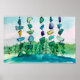 Lake Chimes Blue Glass Landscape Painting Poster