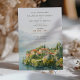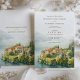 Invite your guests to a dream wedding with this enchanting invitation featuring the iconic Villa del Balbianello overlooking the serene waters of Lake Como, Italy. The front of the card is adorned with a stunning watercolor depiction of the famed villa, nestled among verdant gardens and cypress trees, with the misty blue hues of the lake and mountains in the background. The soft palette combines tranquil lake blue, lush garden green, terracotta roof orange, and the gentle greys of the distant hills, creating an atmosphere of Italian romance. The elegant typography, with the couple's names in a refined script, complements the artwork beautifully, while the wedding details are displayed in a clean, classic font. This invitation is not only a prelude to your special day but a keepsake of the breathtaking destination where your new life will begin.