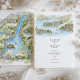The coordinating back highlights a charming illustrated map of Lago di Como, complete with winding shoreline roads, tiny ferries, terracotta-roofed villages, iconic villas, and scenic landmarks. Labels such as Bellagio, Varenna, Lenno, Tremezzo, Como City, and Cernobbio make the design feel like a keepsake travel postcard - perfect for welcoming guests to an Italian lake celebration. All wording is fully customizable, making this suite ideal for destination weddings, weekend itineraries, or elegant European events that want venue-inspired stationery with a unique illustrated touch.