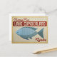 This Greetings From Lake Cumberland vintage travel design features a fun blue fish with red accents and a 1960s retro vibe.
