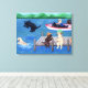 Happy Lake Fun Labradors Canvas Print. Black Labrador and Chocolate Labrador and Yellow Labradors are included in the painting. Labrador Family and their Friends go to camp at the lake. Water fun. Whimsical and funny Labrador Summer Painting painted by Naomi Ochiai. Nice for dog lovers who love Labradors.