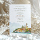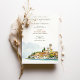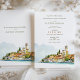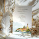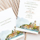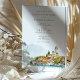 This sophisticated destination wedding invitation features a stunning watercolor illustration of the shores of Lake Garda, Italy. The artwork captures the serene beauty of the lake, lush greenery, and elegant European architecture, all in soft, natural tones. The typography combines classic serif and modern script fonts, giving the invitation a refined and timeless aesthetic. Perfect for couples planning a romantic wedding in Italy, this invitation sets the tone for an unforgettable celebration.
