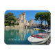A beautiful view of the castle in the village of Sirmione on Lake Garda in Italy printed on a souvenir fridge magnet.