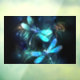 Two transparent, luminous, turquoise, artistically drawn dragonflies on night background with luminescent lake algae and fireflies. Glowing dragonfly.