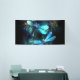 Two transparent, luminous, turquoise, artistically drawn dragonflies on night background with luminescent lake algae and fireflies. Glowing dragonfly.