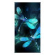 Two transparent, luminous, turquoise, artistically drawn dragonflies on night background with luminescent lake algae and fireflies. Glowing dragonfly.