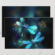 Two transparent, luminous, turquoise, artistically drawn dragonflies on night background with luminescent lake algae and fireflies. Glowing dragonfly.