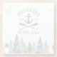 Nautical Lake House Family Name Anchor Oars Marble Coaster includes Watercolor Green Pine Trees