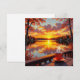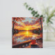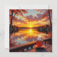 A beautiful blank notecard for a friend or family member with a pretty illustration of a sunrise in the morning over a lake while sitting on a back deck, drinking coffee.
