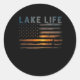Lake Life Fisherman Sunset American Flag Bass Fish Classic Round Sticker