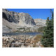 Beautiful Lake Marie lies nestled at the base of majestic granite mountain peaks high in the Snowy Range of the Rocky Mountains in southeastern Wyoming. This photograph was taken in early autumn before new snow, and shows the huge peaks silhouetted against a bright blue early fall sky. The forest of pine and spruce runs down to the lake at the distant shore. In the foreground, the rocks and spruce trees make a pretty frame. Photograph by Debra Mickelson.