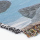 A quality printed throw has its advantages. This is a much finer weave throw than its loopier cousins, and though lighter, it is worth the investment for custom room accessorizing. The back is much prettier than the typical brown, and the fringe on the long sides very vivid, the selvage nicely done. Before photographing, I washed the throw in cold water, delicate, with a thicker woven throw the same size. On tumble dry low, this throw was dry in half the time as the other. This is a very practical quality if you use throws for furniture covers or to wrap up in frequently. The sleekness of the fabric makes it a great layer for accenting or protecting without the feeling of sitting on too much stuff. Perfect for napping or when you feel a light chill coming on. The color printing is beautiful and on this fabric, matched the design and color of my Photoshop image. This is an advantage for blending room fabrics and colors. The fringe on the short sides prints the colors from the design image and therefore varies from the side fringe. I streaked a white fractal line through the plaid pattern to give the illusion of weaving. This printed as crisp as an illusory thread, and put some white in the short side fringe, showing another advantage of print vs loomed- for artistic purposes, line lines, detail, and color integrity can be planned and preserved. My loomed throws have color limitations and more of a needlepoint texture. Print throws reproduce an exact image. The throw felt a little stiff straight out of the package, but this went away in the first delicate wash. Of course I searched the wash water for ink or bleeding and there was none.
