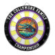 Circular colourful crocodile design with a lake setting and a bold target overlay