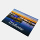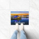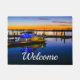 Welcome doormat that can be customised featuring a beautifully bold and powerful sunset magic hour over Lake Ray Hubbard in Rockwall Texas, United States. A runabout boat with lights sits parked in the boat dock while a man stands enjoying the beautiful twilight hour. Looking for more prints or products? Feel free to visit my store: http://www.zazzle.com/timelessmomentsphtgy