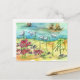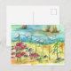 Lake Shore Birds Seagulls Watercolor Pond Flowers Postcard