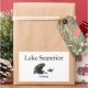 This fishing sticker celebrates Lake Superior ice fishing. During winter, Lake Superior ice fishermen bring in walleye, pike, trout, and other species.