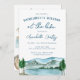 This lake or mountain destination themed itinerary card is perfect for a bachelorette party, camping, or destination wedding! The scenery and modern script lettering are beautiful and whimsical.