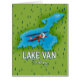 Lake Van Turkey Map beautiful travel poster with a red prop plane.