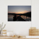 Sunset with pier and boat at Lake Windermere, Cumbria, UK