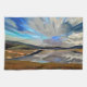 An art design of a lake with the dramatic sky reflected in the lake water. Hills and fields surround the lake.