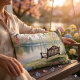 Lakeside Swing in Romantic Watercolor Garden Lumbar Cushion