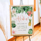 This first birthday welcome sign features beachy watercolor palm leaves, pink hibiscus florals and a cute tropical pineapple. This fun welcome sign is the perfect addition to your 1st luau themed girl birthday party event.