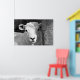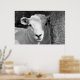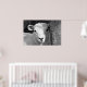 A beautiful black and white photographic design of a very cute little lamb.
