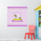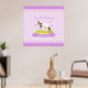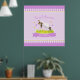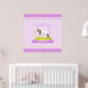 Lamb skipping cute custom name purple baby nursery poster. Cute spring lamb whimsy watercolor painting of a baby sheep skipping in a flower meadow with purple and yellow butterflies. Personalize with your own name. Cute lamb on a purple sky background. Other matching cute sheep art items available. © Uniquely painted in watercolor and designed by Sarah Trett for www.mylittleeden.com