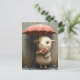 AI generated art of an adorable lamb standing in the rain with an umbrella with hearts and a arm full of flowers