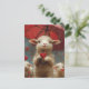 Lamb with Umbrella in Rain holding a Heart Postcard
