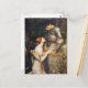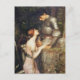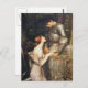 Vintage fine art painting by John William Waterhouse. Young woman in pink on her knees in front of a knight. Painting inspired by a poem.