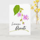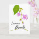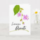 Lämmin osanotto. Hosta blooms and a leaf decorate the cover of this sympathy card written in Finnish. Warm Condolences on the cover in Finnish. Blank inside for your condolences. Paper greeting card with an illustration of a Hosta plant stem with variegated leaf. Art, image, and verse copyright © Shoaff Ballanger Studios, 2023.