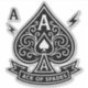 Bold, monochrome Ace of Spades with ornate filigree, lightning accents, and a clean ribbon banner for your custom text. Crisp vector lines and a true transparent background make it pop on dark or light products.