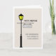 Elegant Lamp Post moving announcement featuring a lit lamp post with a hanging sign thereon where text can be customised. Ideal for giving notice of your new address. Further text can be added inside the card. © Morning 6