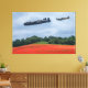 A Lancaster bomber and a Hawker Hurricane flying over a large poppy field.