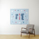 Stylish patriotic Fourth of July holiday party photo backdrop tapestry sign design features a "Land of the Free" quote script typography text design in red, white, blue, and navy blue colours with star accents and light blue background colour.