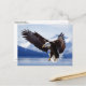 Animal card showing a landing bald eagle in Alaska. The bald eagle (Haliaeetus leucocephalus) or also called sea eagle is a bird of prey found in North America. Its range includes most of Canada and Alaska, all of the contiguous United States, and northern Mexico. It is found near large bodies of open water with an abundant food supply and old-growth trees for nesting. The bald eagle is both the national bird and national animal of the United States of America.