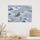 A photographic print of a pretty little  Mallard female making a not so elegant landing over a frozen river in one of Ontario's coldest Winters ever recorded.