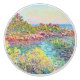 This design features a painting by Claude Monet, showing a beautiful scene of green vegetation and the blue water of the sea shore in Monte Carlo, Monaco, as the sun sets on the horizon, creating a multicolored sky. It is painted in a clearly impressionist style. Claude Monet completed this painting in 1883.