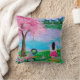 Transform your space with this charming decorative pillow, featuring a serene and whimsical scene. The design showcases a picturesque landscape with a blooming cherry blossom tree beside a tranquil lake. A girl in a vibrant pink skirt stands peacefully, gazing at the water, while a tire swing adds a playful touch to the setting. A pink bicycle rests nearby, perfect for evoking memories of carefree days. This pillow is an ideal addition to any living room, bedroom, or cosy nook, bringing a sense of calm and nostalgia to your home decor.