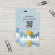 A beautiful design showcasing a forest covered in snow, mountain landscape and a golden sunset or sunrise reflecting in the water. Colour tones include neutral tones such as blue, white and gold. A rustic design ideal for the holiday season. Customise your business logo, QR Code and details and make it your own!