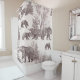 Landscape with bears, cubs, winter trees and fir t shower curtain
