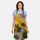 Landscape with House and Ploughman. Vincent Willem van Gogh. Landscape in bright warm colours. There is a house with a red roof by the road. Yellow fields go up the hillsides. In the field, a man with a horse is harvesting. Reproduction of famous works of art images in the public domain.