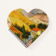 Landscape with House and Ploughman. Vincent Willem van Gogh. Landscape in bright warm colours. There is a house with a red roof by the road. Yellow fields go up the hillsides. In the field, a man with a horse is harvesting. Reproduction of famous works of art images in the public domain.