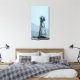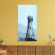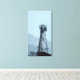 A stretched canvas print with a mobile phone mast in a simplified landscape in shades of blue.