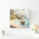 Bright landscape with sailing ships at sea. Computer graphic, paint effect.