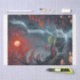 A moody, atmospheric landscape in deep, dark tones, highlighted with touches of red from the moon and autumn leaves. A tall waterfall cascades gracefully between rocky cliffs, creating a sense of serene power and natural beauty. This elegant design brings a dramatic and contemplative mood to your decoupage projects, perfect for adding depth and sophistication.