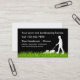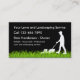 A lawnmower serviceman appears on this business card cutting the grass and the text templates you can customise are easy to change to your own business information online. Designed for a lawn or landscaping service.