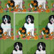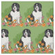Landseer Newfoundland in a garden surroundwd by liliues, green background, colorful fabric, for folks who love newfies and newfoundland dogs, preerfect for nursery curtains, craft room curtains, pillows and couch covers, home decor or craft ideas